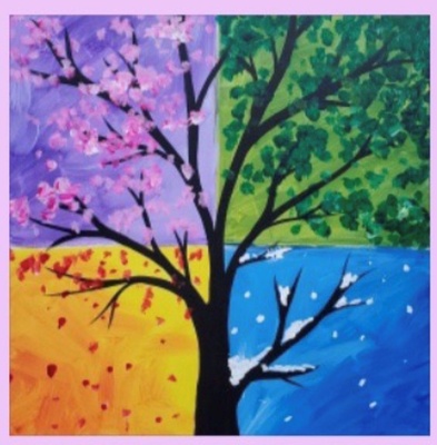 Price includes the instructed painting on a 11"x14" canvas (see image below for which design we'll be creating) and two drink tokens. Any additional drink and/or food purchases are on your own.